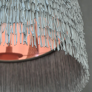 Silver grey tassel lampshade with mirror copper metallic liner